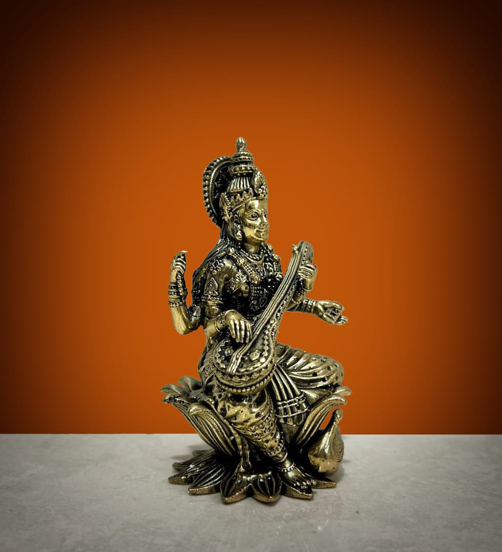 Brass Lotus Saraswati Statue