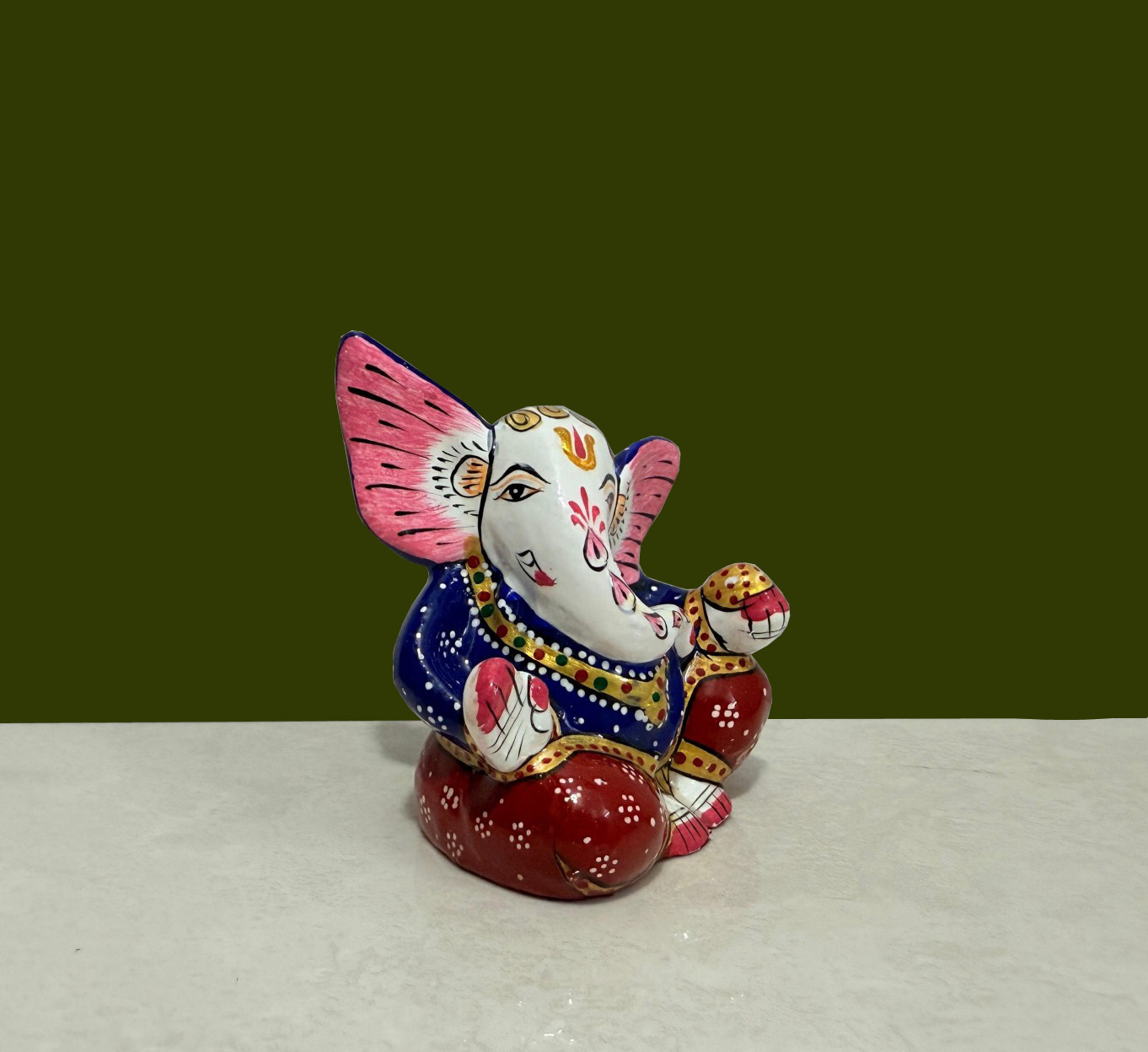 Brass Ganesh Sitting On Lotus with Ring Stone