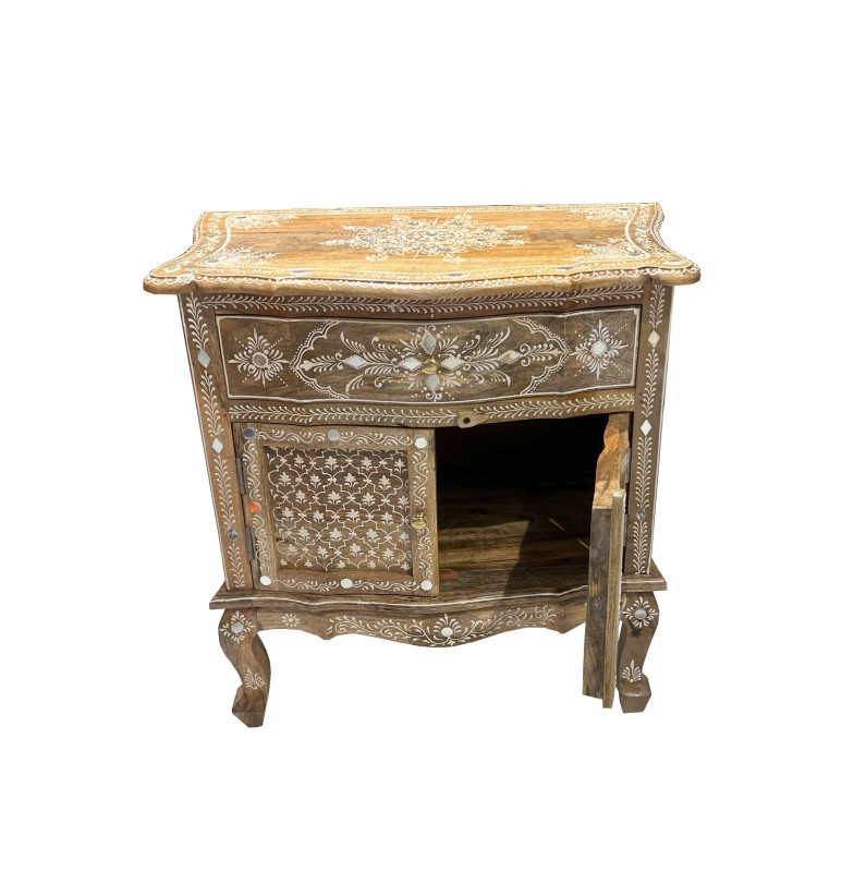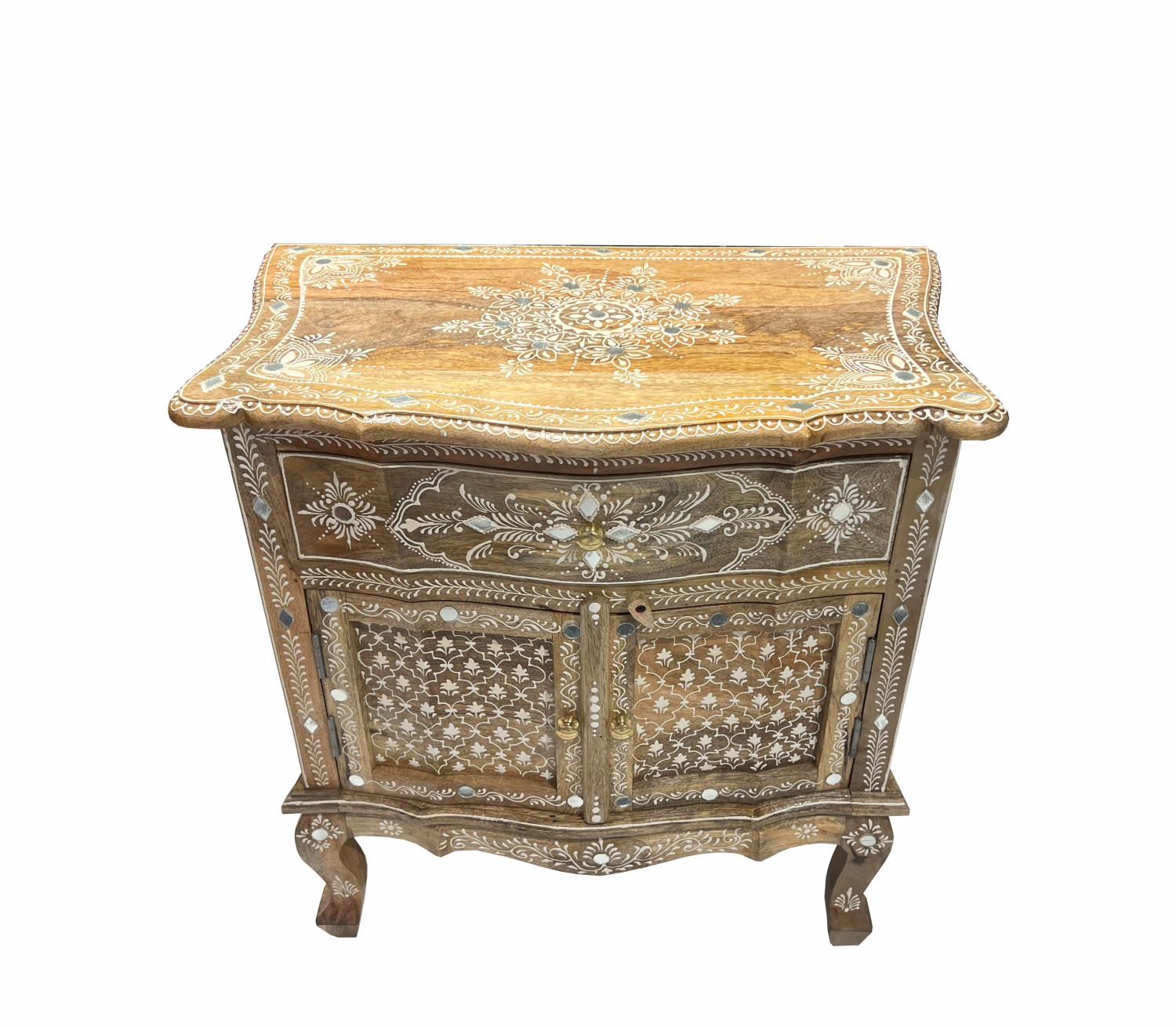 Wooden 4 Drawer Curve Leg Brass Fitted