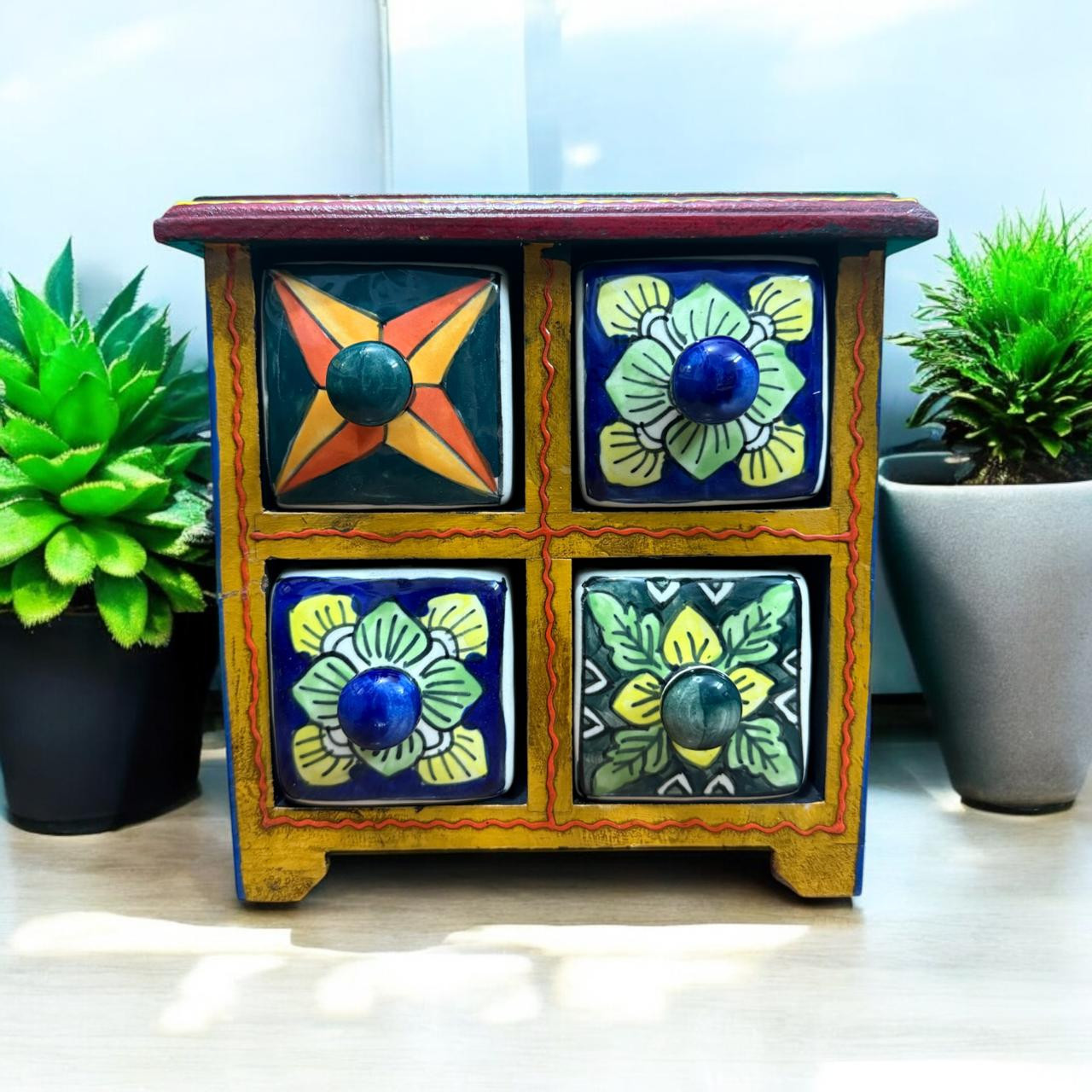 Wooden 4 Drawer Curve Leg Brass Fitted