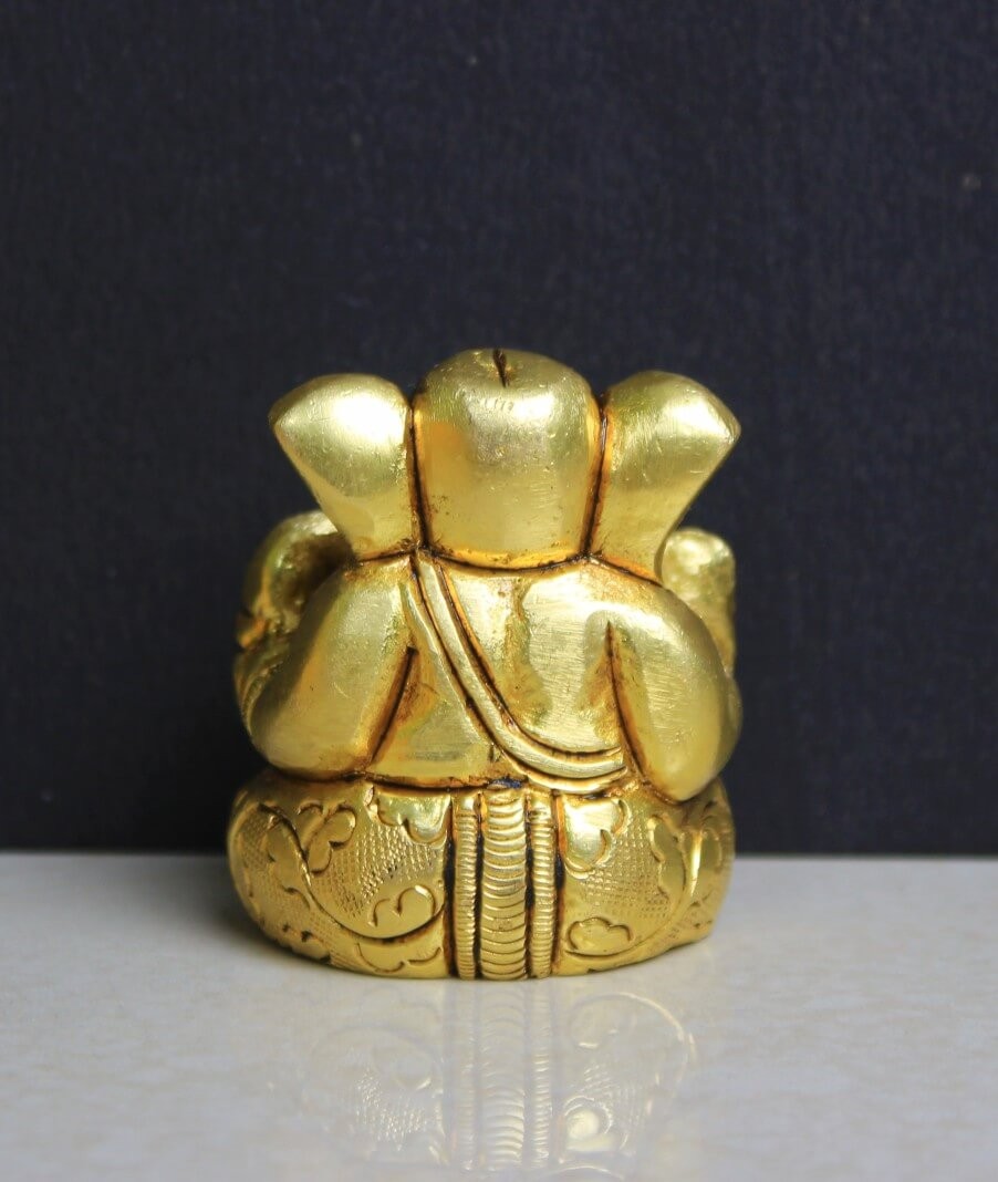 Brass Ganesh Sitting On Lotus with Ring Stone