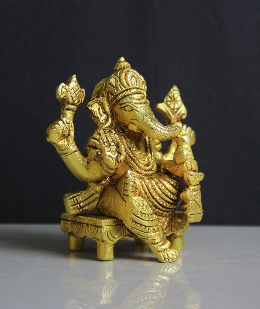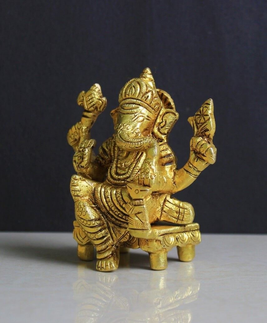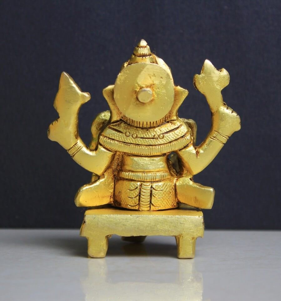 Brass Ganesh Sitting On Lotus with Ring Stone