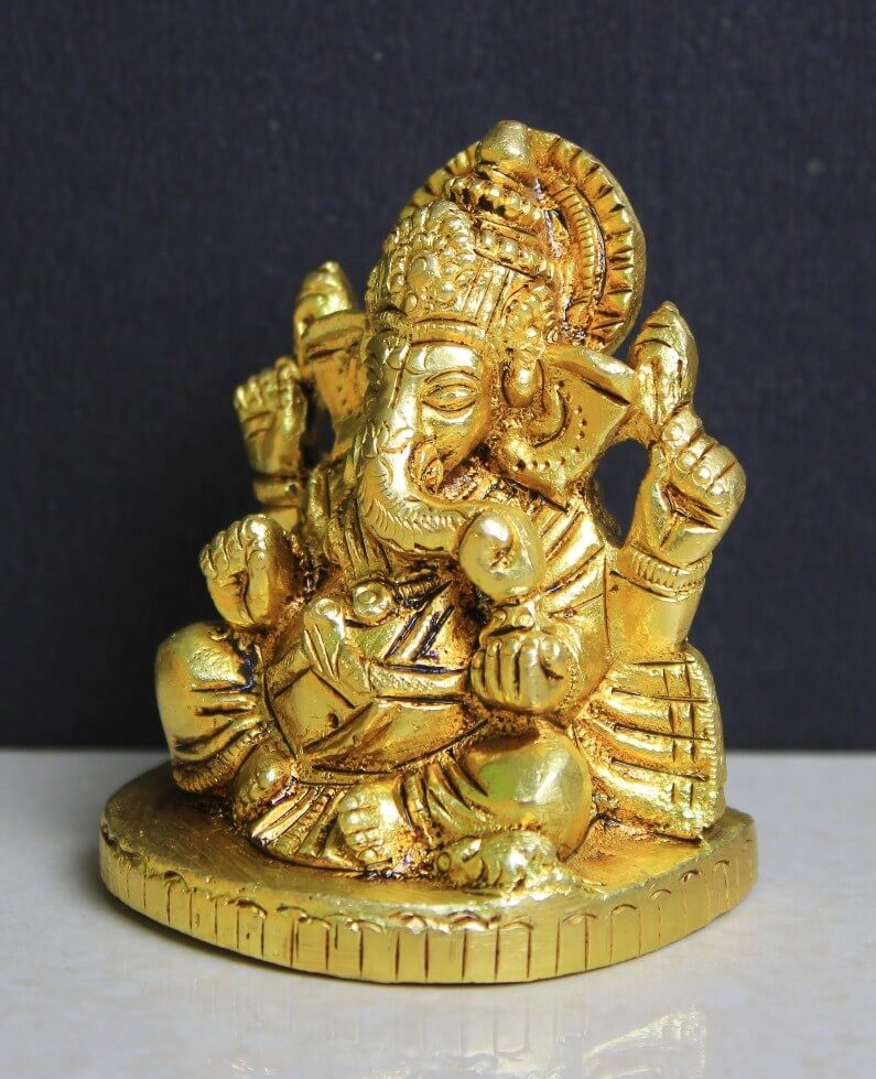 Brass Ganesh Sitting On Lotus with Ring Stone