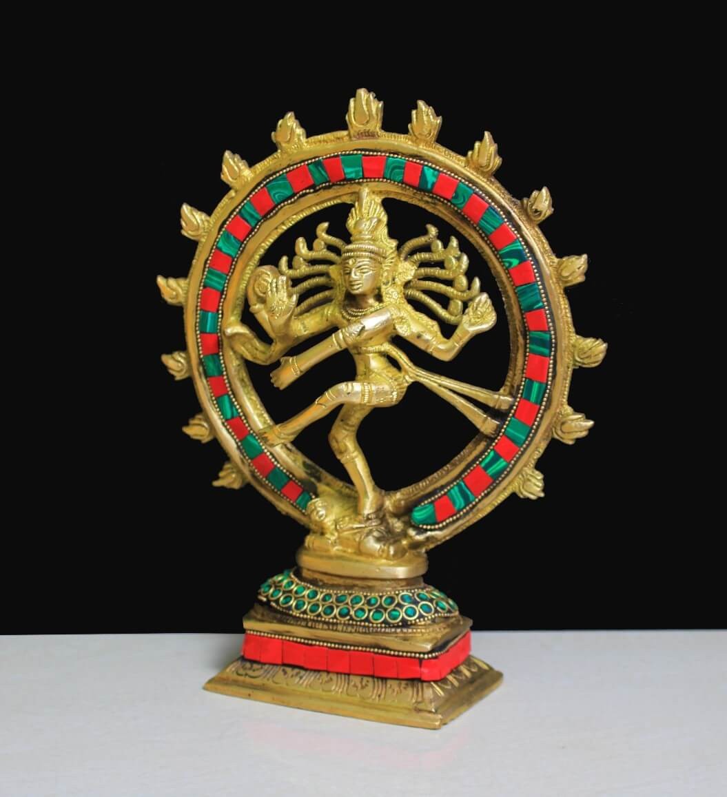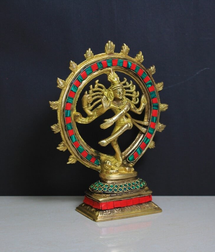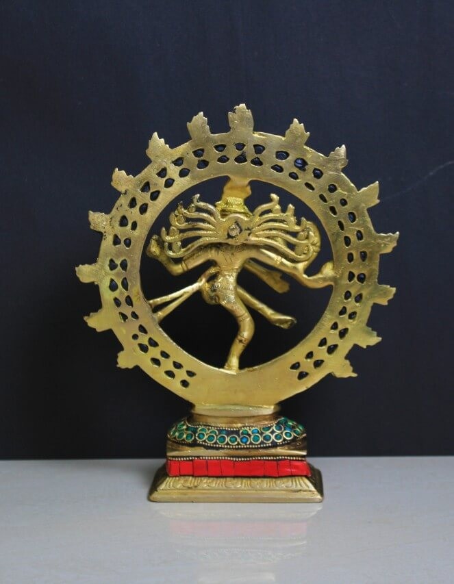 Brass Ring Stone Work Natraj Statue | Brass Dancing Shiva Idol