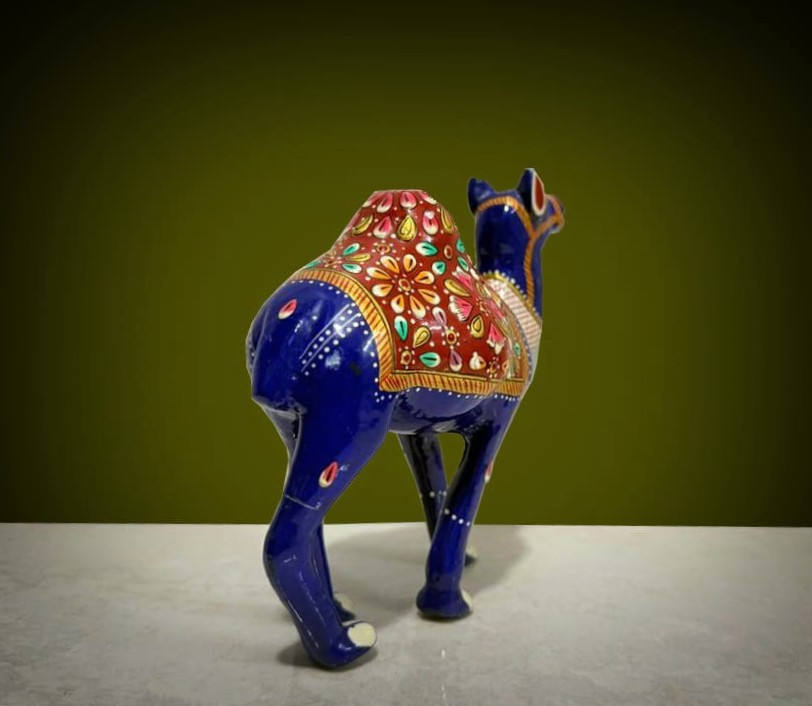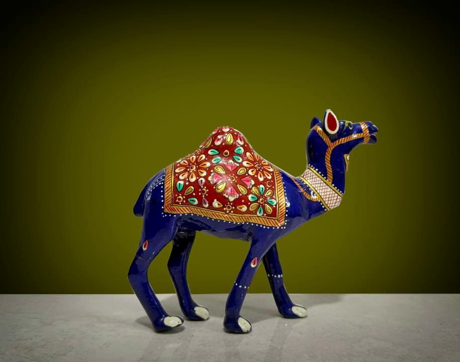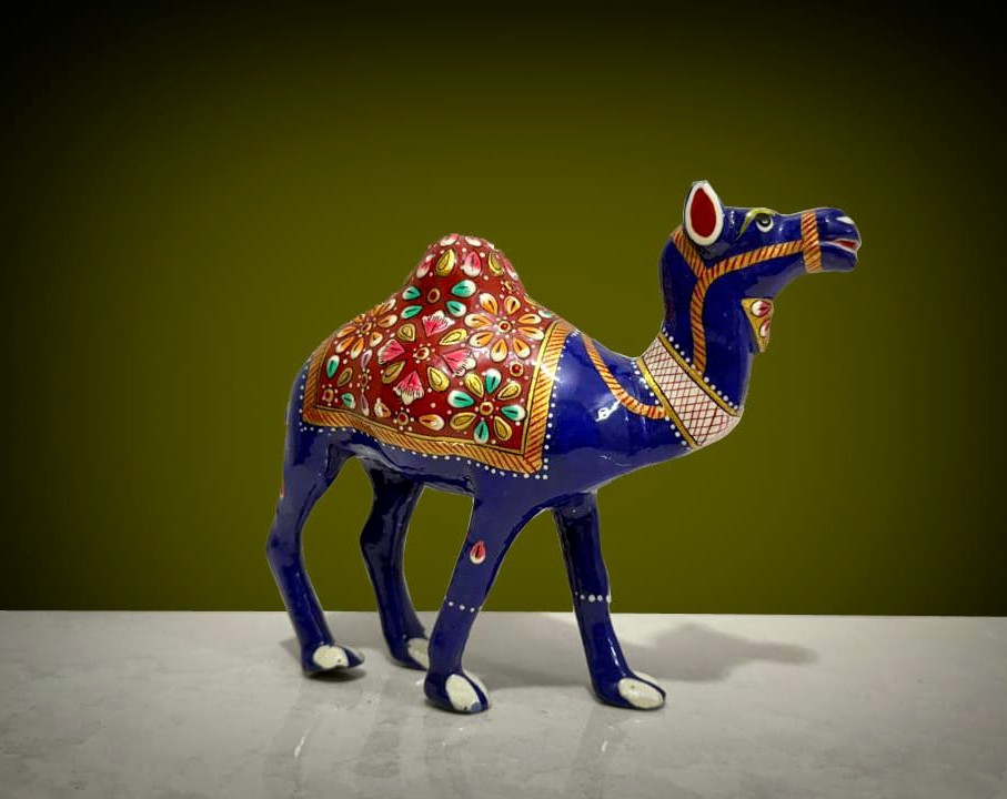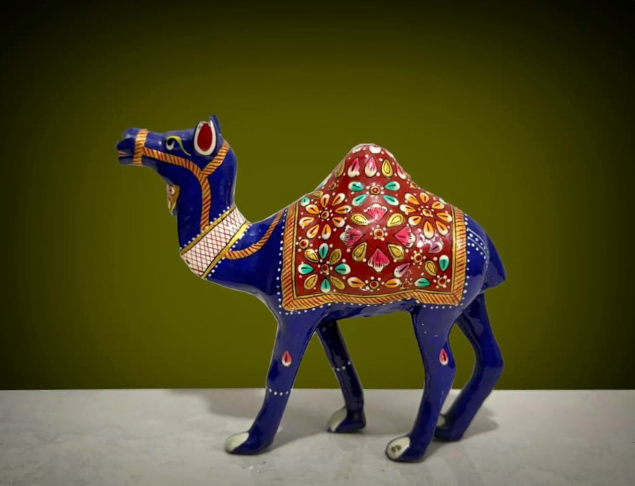 Metal Crafted Enamel Painted Camel Figurine for Home Decor