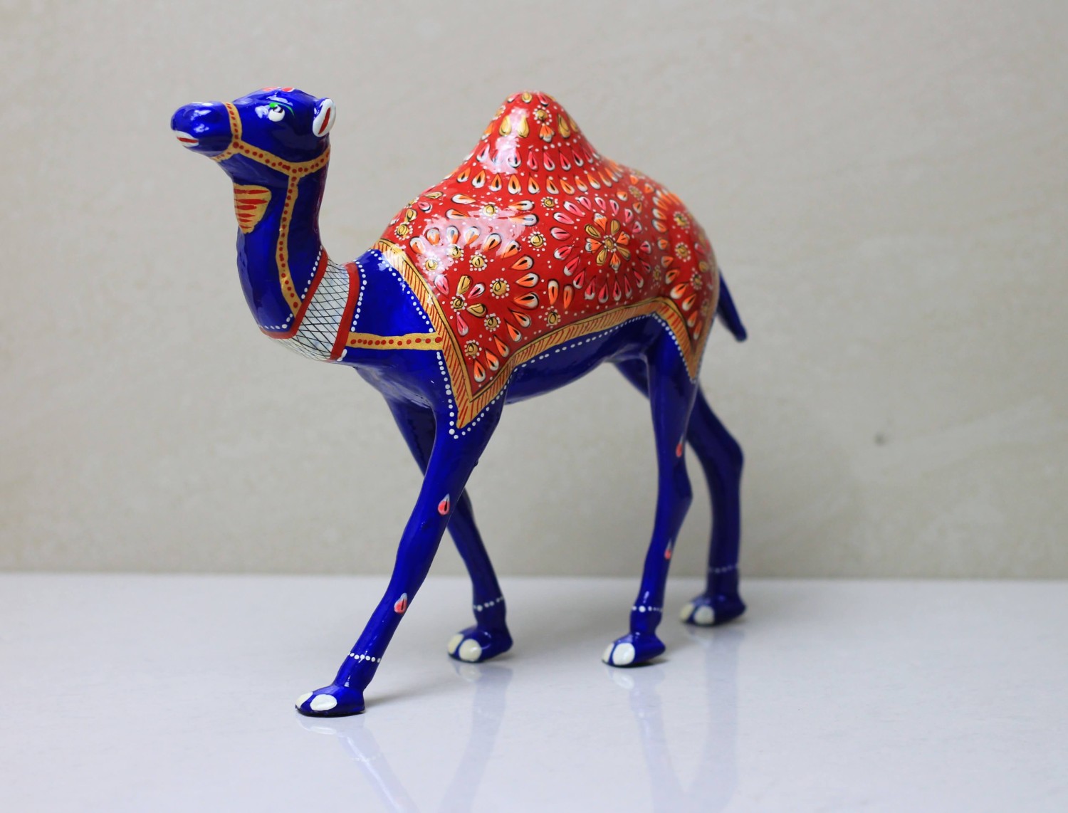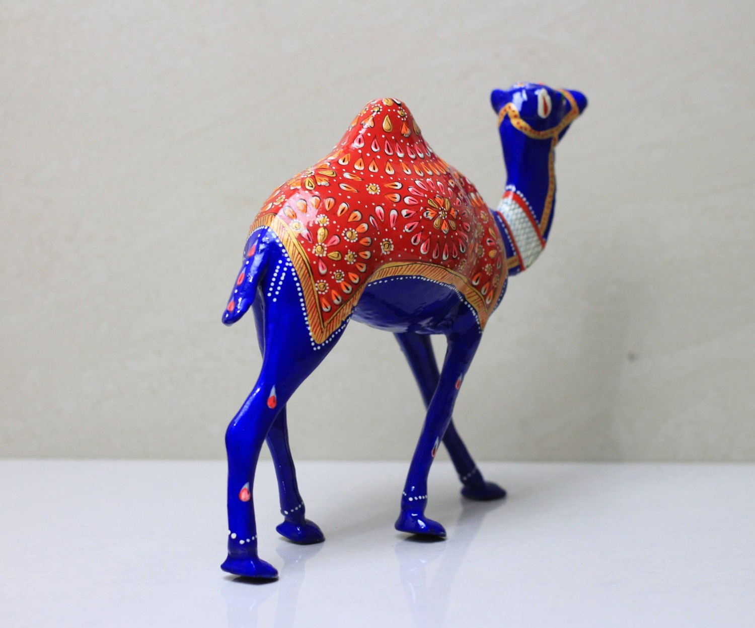 The intricate Indian craftsmanship and vibrant colors make these decorative products very unique. The figurines are made of heavy metal and have been delicately hand-painted with shiny enamel paints. Meenakari is the art of painting various types of metals with vibrant colors in dramatic motifs? Rajasthan, in India, is famous for producing a wide range of intricate designs on various items, jewelry, and figurines. The art is raw, unique, and extremely delicate.
