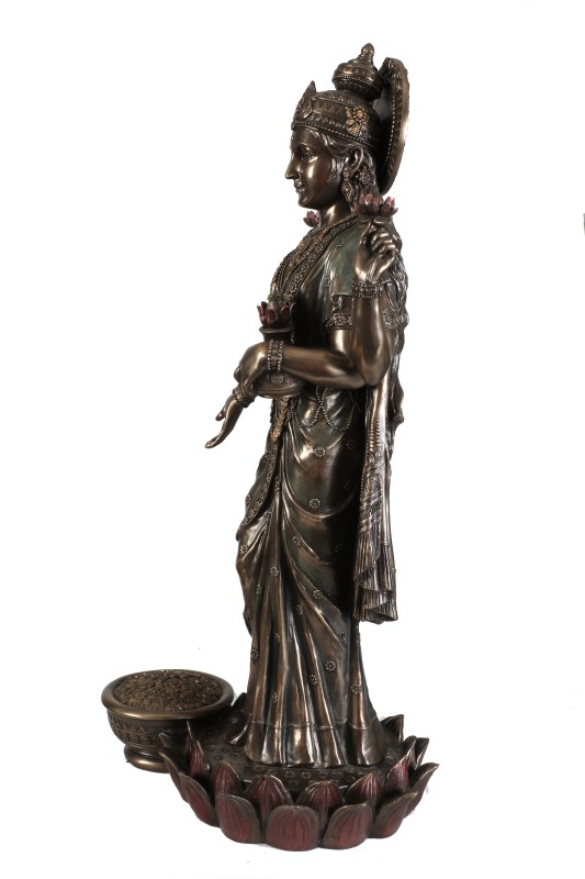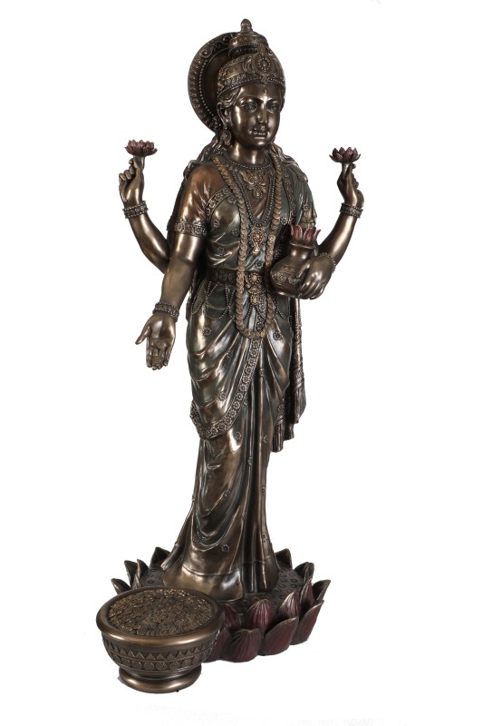 This is a beautiful, unique & gorgeous hand work on Cold Cast figure of Hindu goddess Laxmi. Bless your place and heighten the beauty and spirituality of your house or work place with this Handmade goddess Laxmi Sculpture. goddess Laxmi is the remover of obstacles, the deity whom worshipers first acknowledge when they visit a temple. This Handmade Goddess Laxmi Sculpture is fully artisan crafted in India, making it a truly authentic figurine. This Handmade Goddess Laxmi Sculpture is designed in ceramic using sand casting technique and has a Off-White color to it.Place this calm art piece in your living room for an effervescence beauty or gift it to your loved ones before he/she enters a new phase in life. It represents the power of the Supreme Being who removes obstacles and ensures success in human endeavors. Complete the décor of your home in the utmost of style or add some Indian flair to your living room décor.