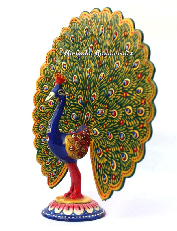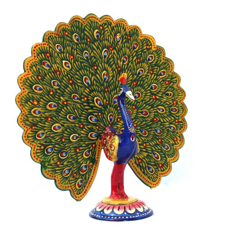 A magnificent depiction of a bird whose exquisite plumage symbolizes royalty, wisdom, and immortality. Its fabulous tail has been the subject of many fantastic tales and now, this intricately patterned bird, boasting of a metal enamel painted throne can enhance your home.