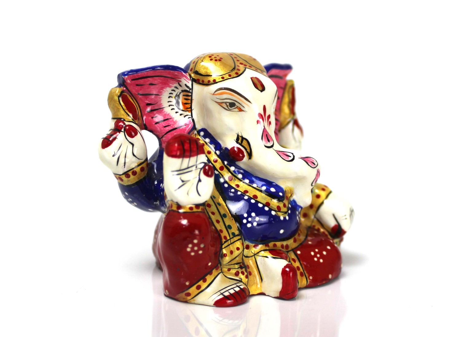 Nirmala Handicrafts presents to you a beautiful Lord Ganesh or Ganesha statue in metal. This representation of the almighty will bring tranquility to your home. Made of Metal you can place it easily on your table or in your home temple. It will also add to your home decor and table decor. Ganesh Idol Beautifully Handpainted Statue for Your home Temple and Home Interior. It is also a good gift article.