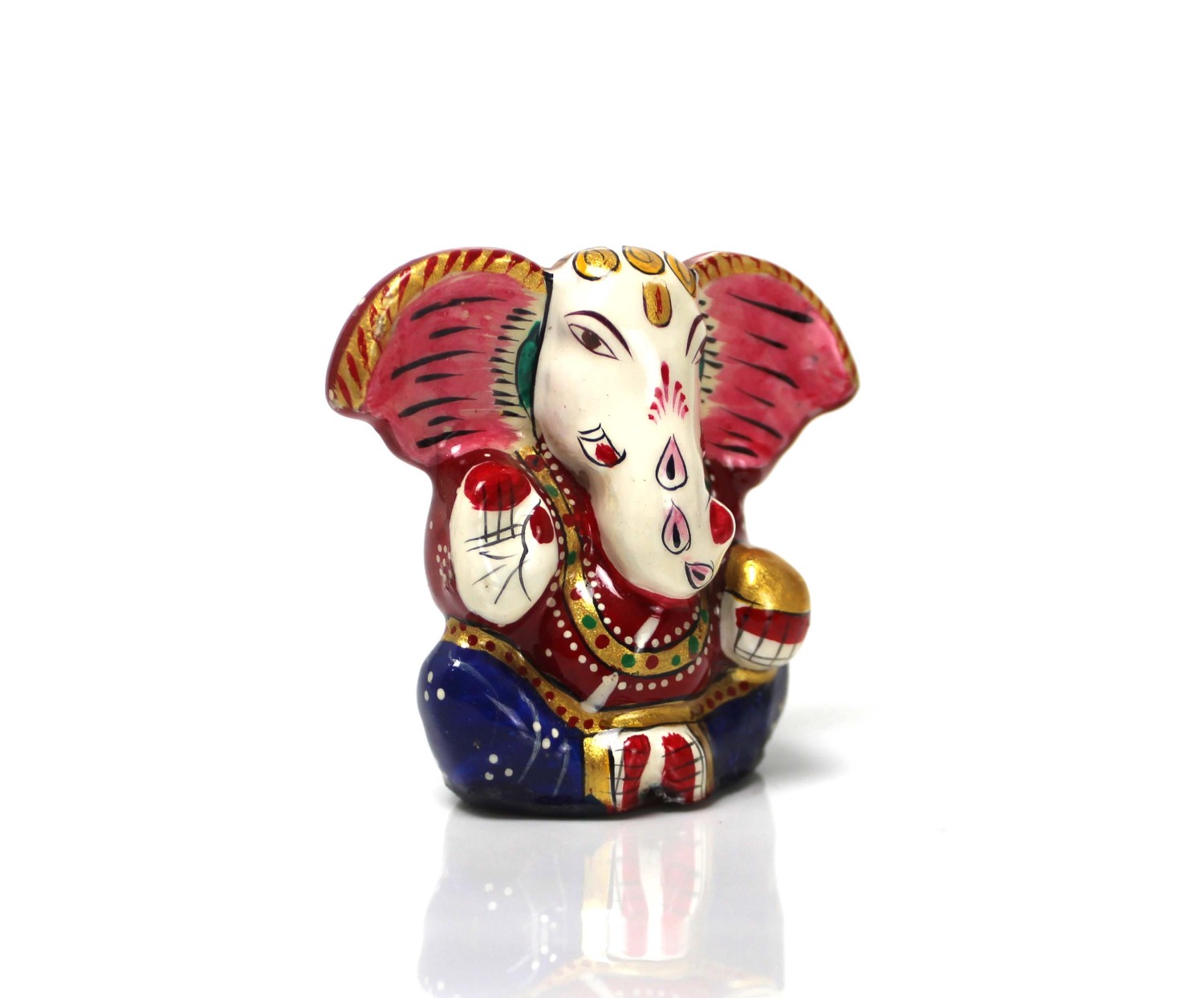 Nirmala Handicrafts presents to you a beautiful Lord Ganesh or Ganesha statue in metal. This representation of the almighty will bring tranquility to your home. Made of Metal you can place it easily on your table or in your home temple. It will also add to your home decor and table decor. ganesh Idol Beautifully Handpainted Statue for Your home Temple and Home Interior. It is also a good gift article.