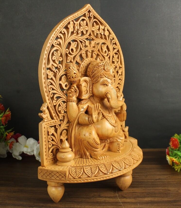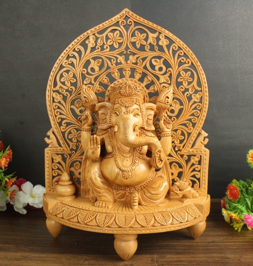 Brass Ganesh Sitting On Lotus with Ring Stone