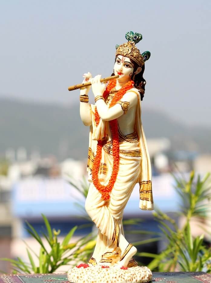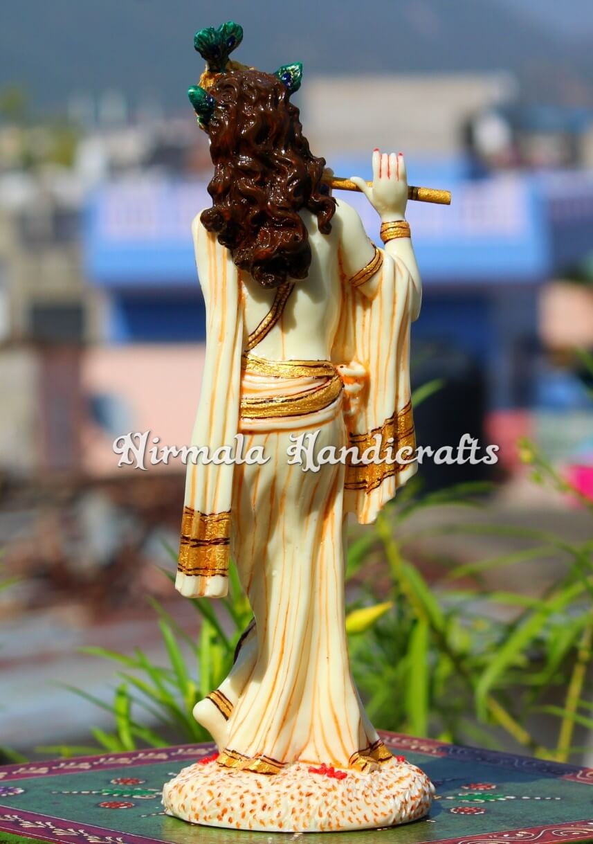 Resin Standing Pagdi Krishna Statue (blue and yellow)