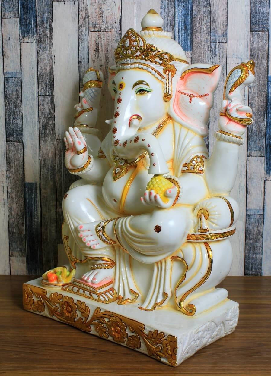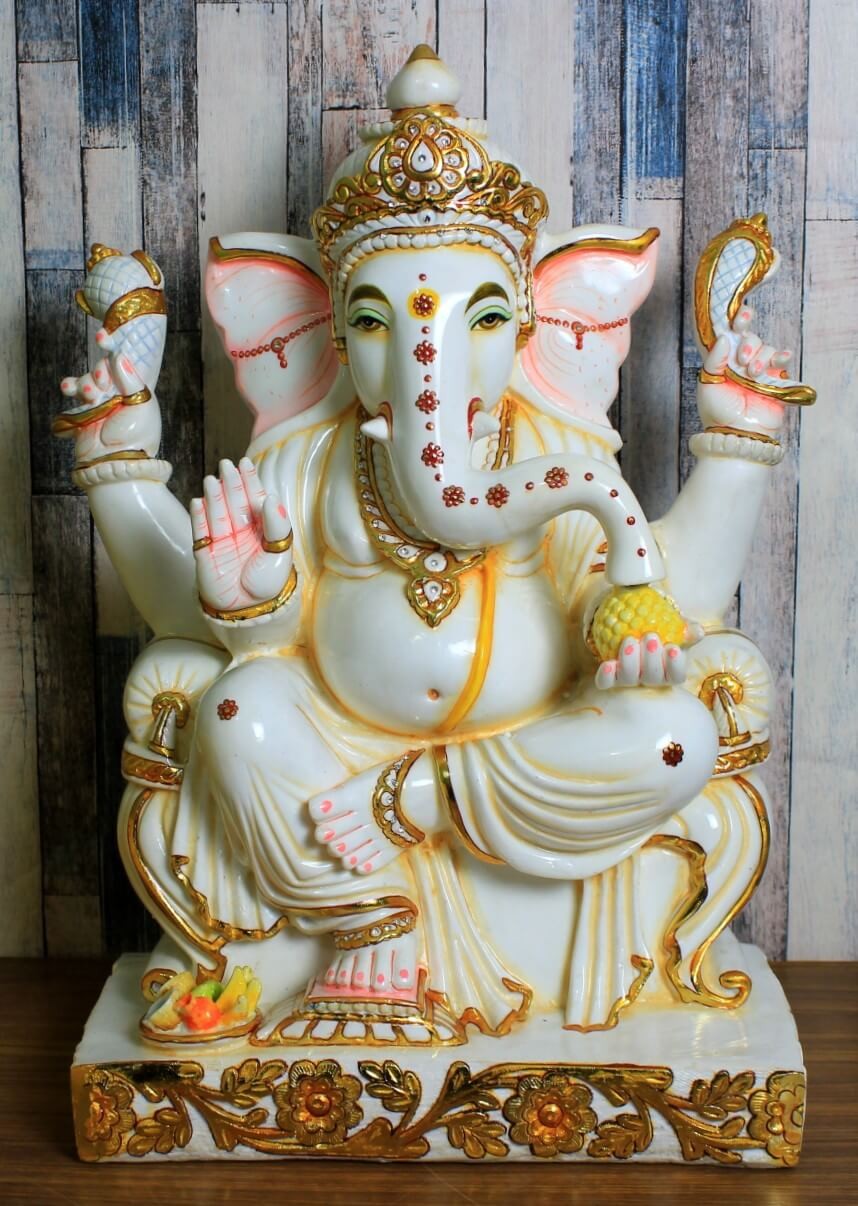Brass Ganesh Sitting On Lotus with Ring Stone