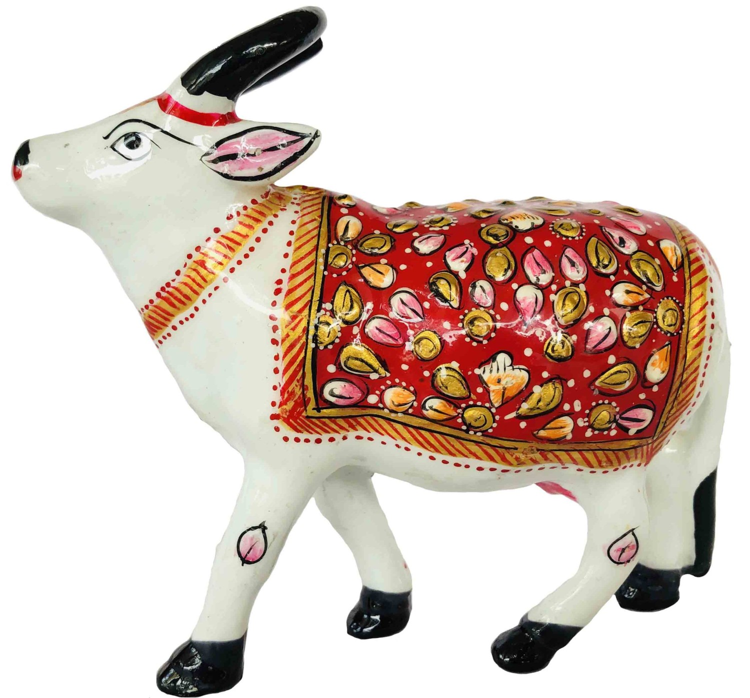 Embossed Painted Meenakari Cow for Temple Decor