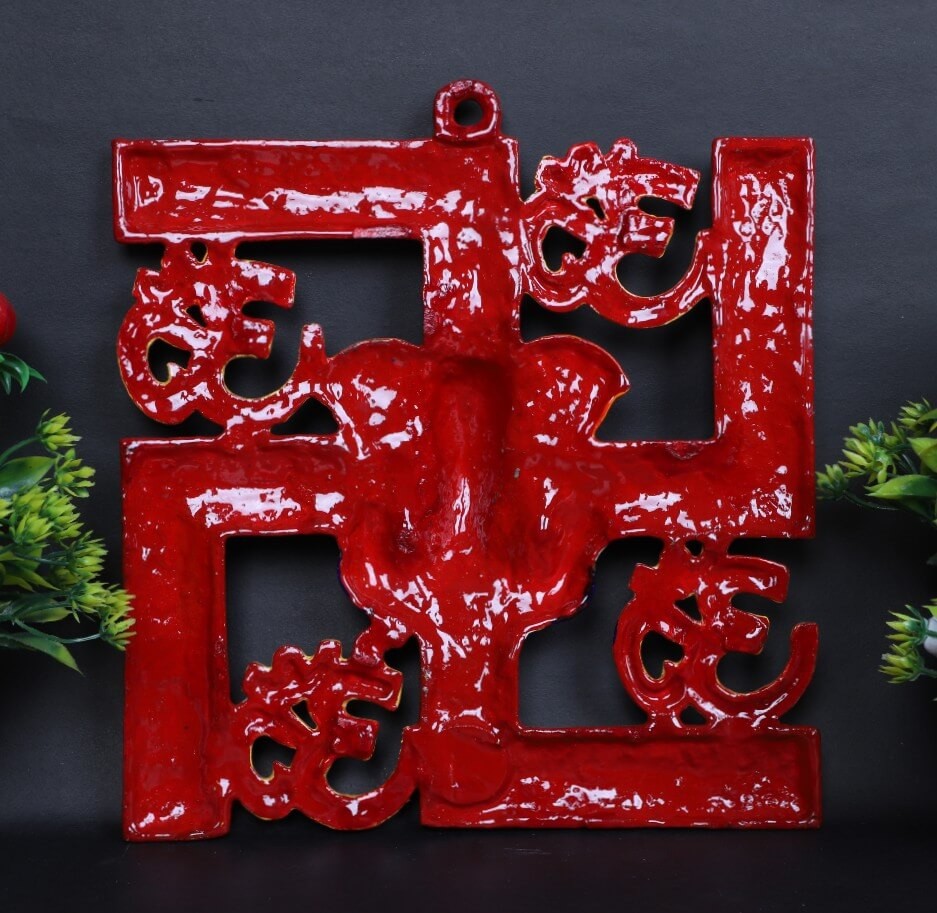 Metal Crafted Swastik Ganesh Wall Hanging | Om Symbol Swastik Ganesh Wall Decor
