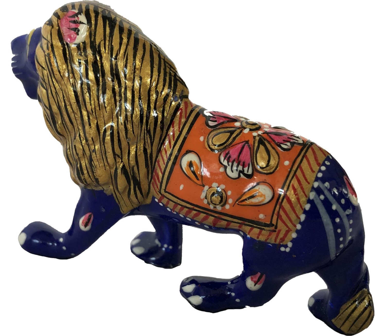 This unique piece of MEENAKARI METAL LION is made of aluminum. A beautifully hand-finished showpiece. Lion as one might imagine primarily deals with strength. The fact that it is a nocturnal creature means that the lion is a symbol of authority and command over subconscious thought. This serves as a symbolic message of balance and sound judgment. In that the lion shares the world of both night and day, the lion bears a message of prudence to us. In other words, the lion asks us to not overdo it in certain areas of our lives. Rather, keep an even mind and an overall balance in our life activities