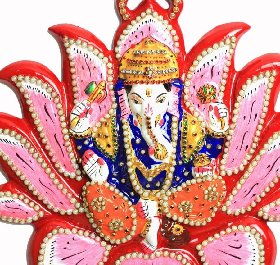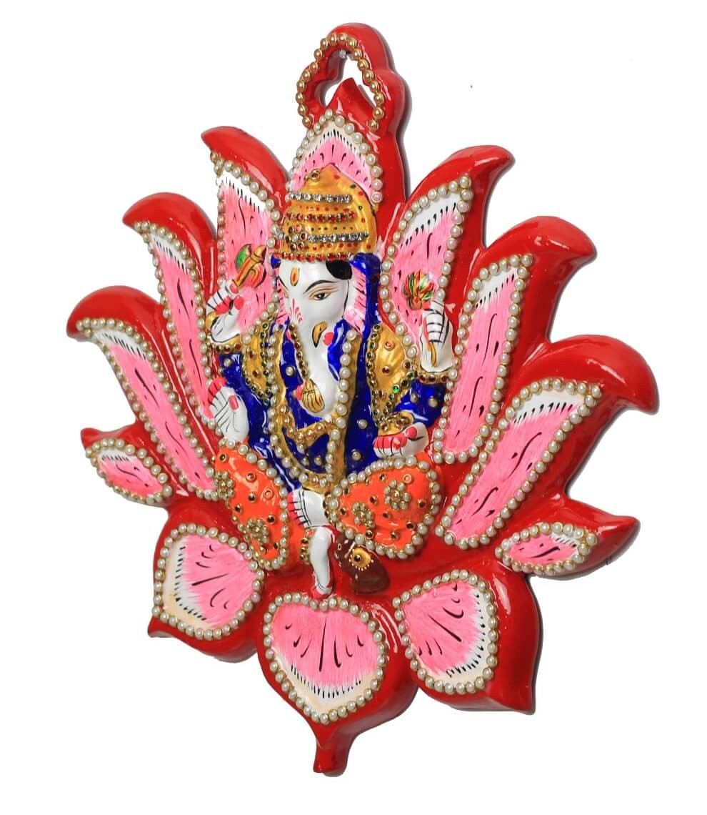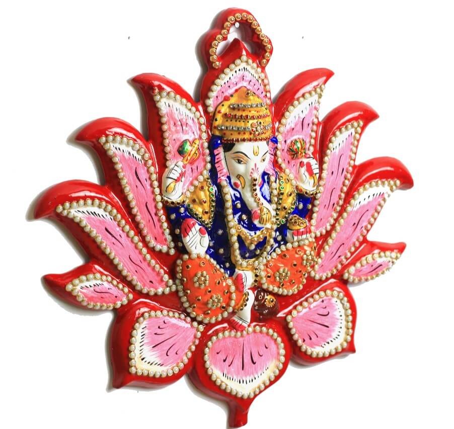 Metal Stone Work Lotus Ganesh Wall Hanging