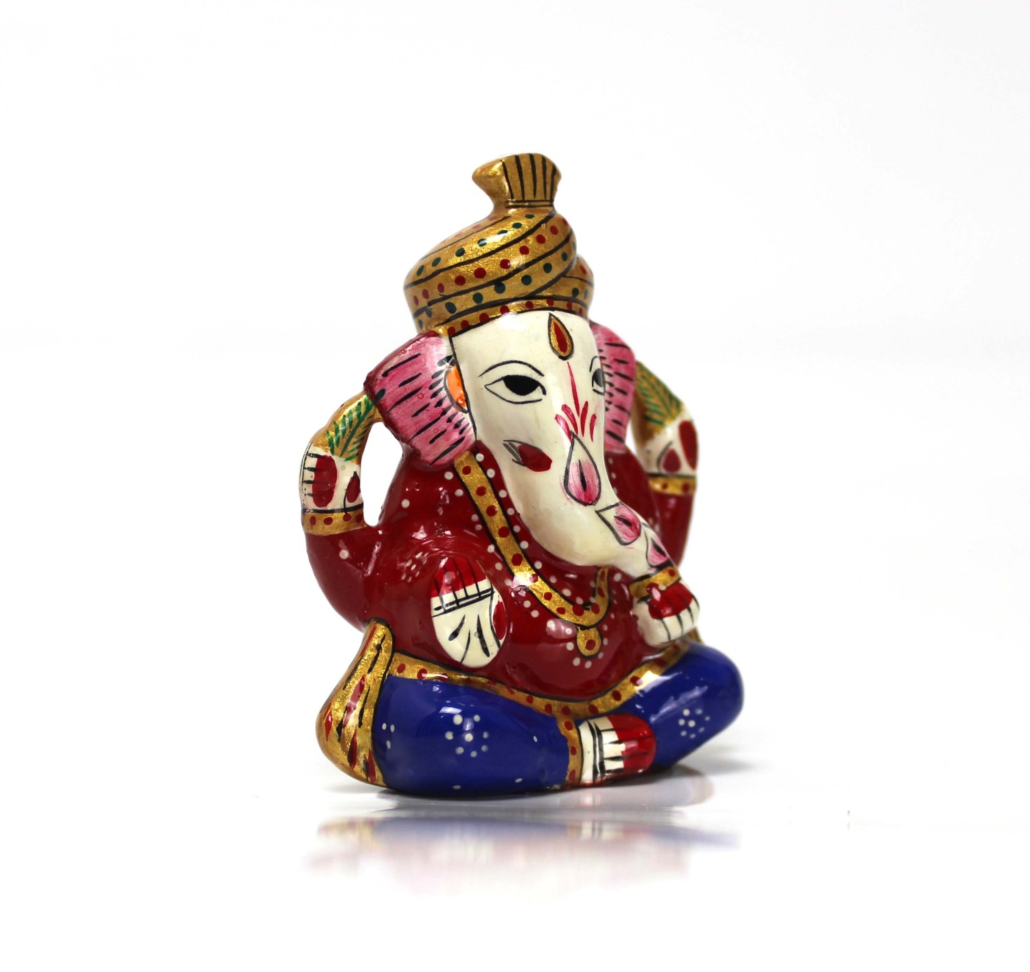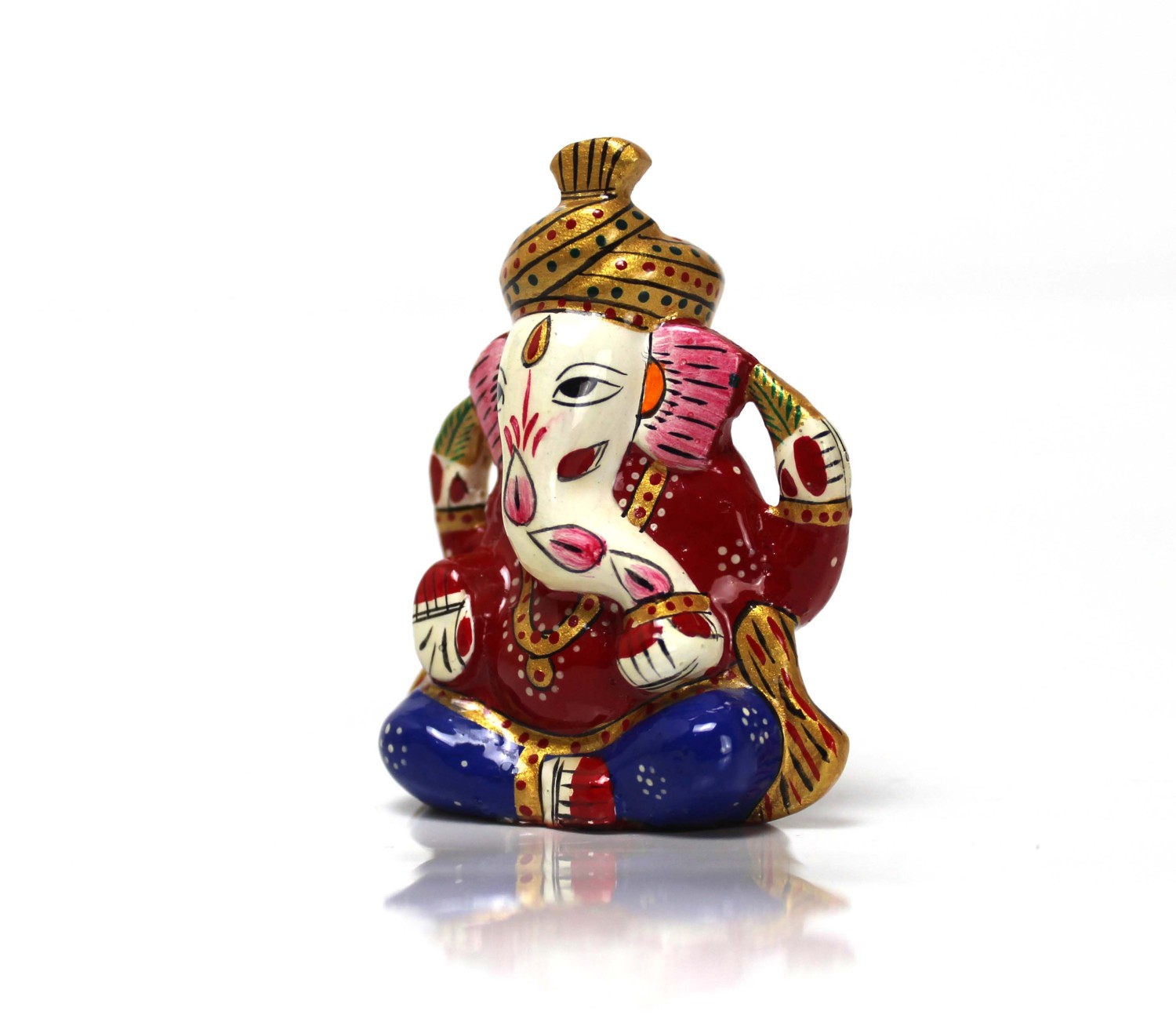 Nirmala Handicrafts presents to you a beautiful Lord Ganesh or Ganesha statue in metal. This representation of the almighty will bring tranquility to your home. Made of Metal you can place it easily on your table or in your home temple. It will also add to your home decor and table decor. ganesh Idol Beautifully Handpainted Statue for Your home Temple and Home Interior. It is also a good gift article.