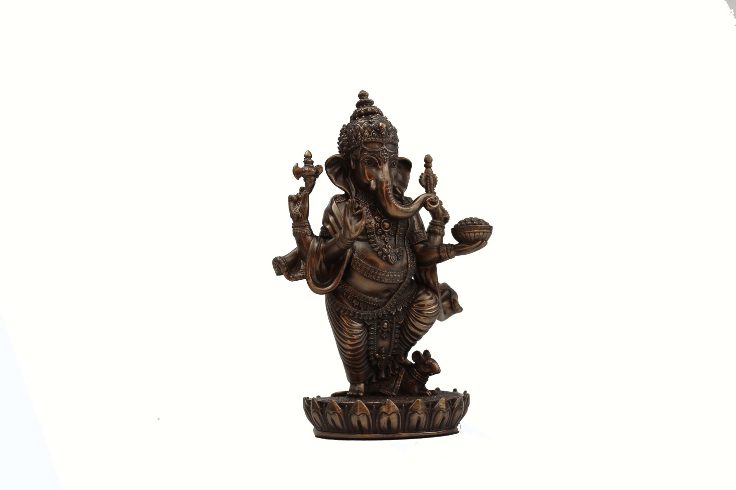 Brass Ganesh Sitting On Lotus with Ring Stone