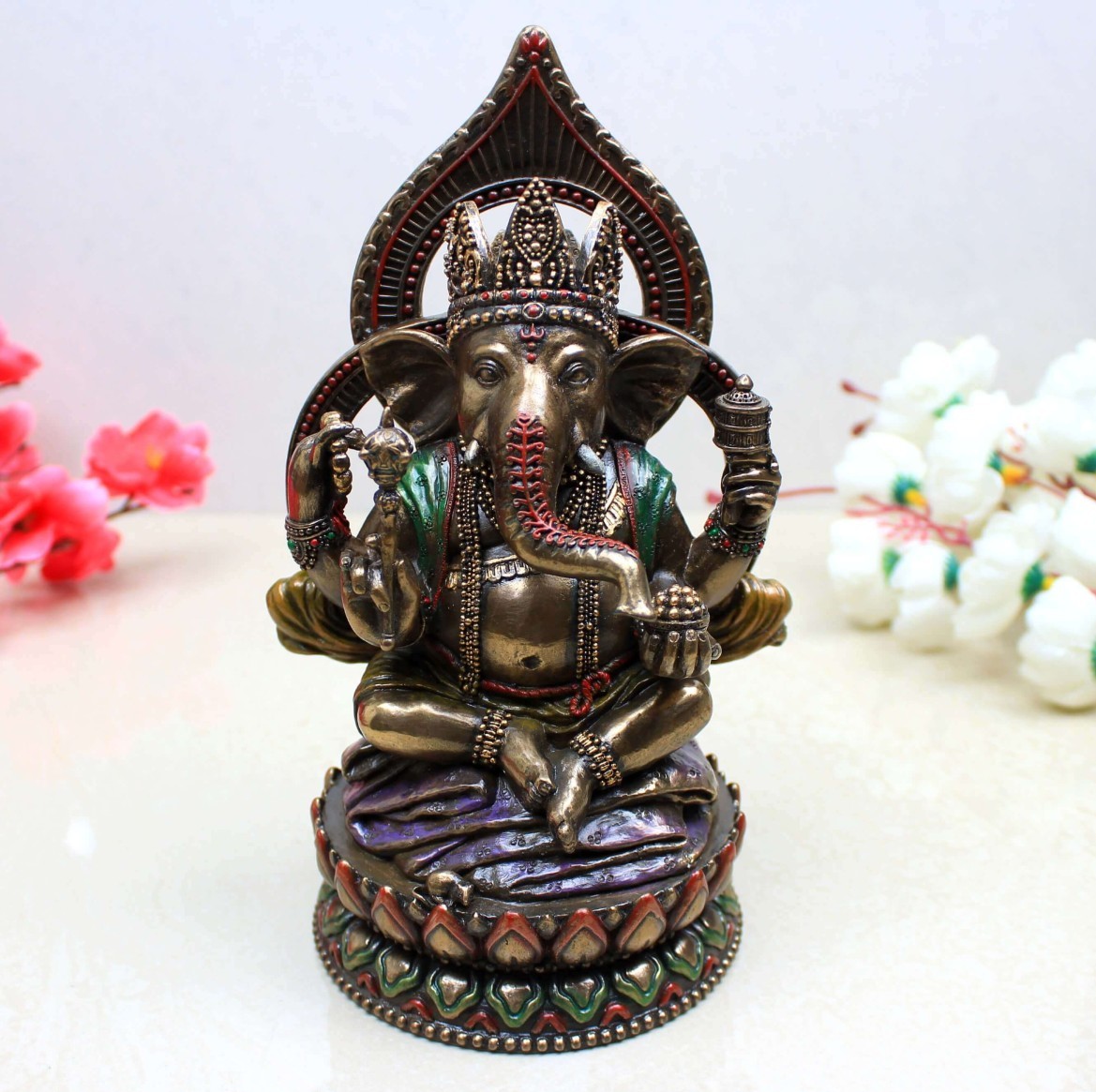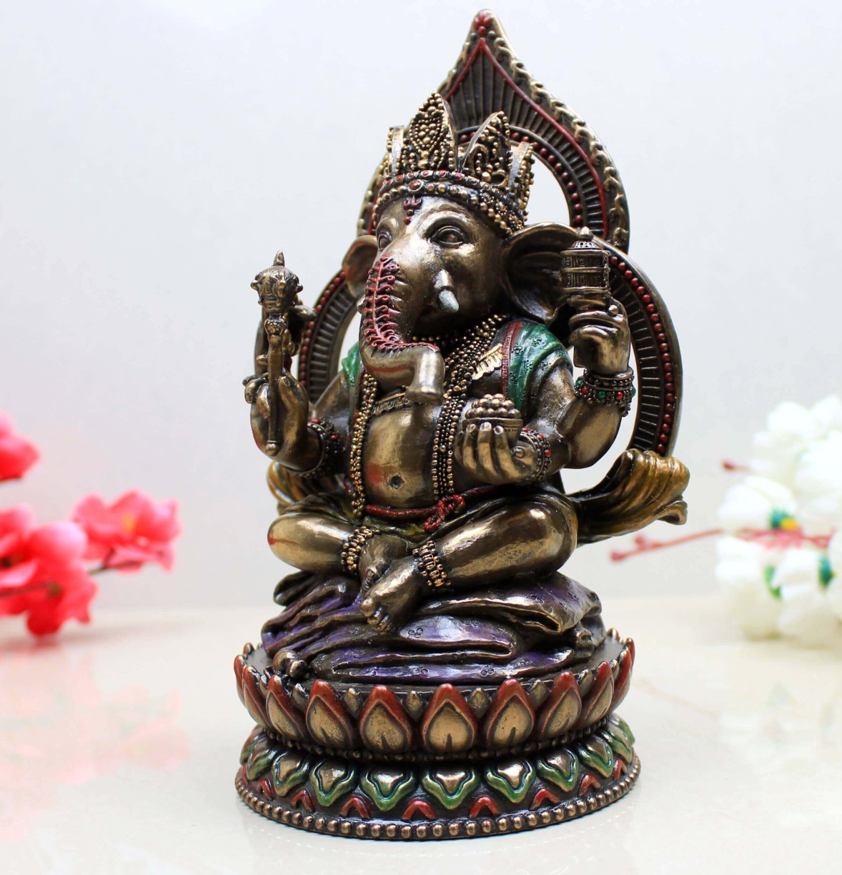 Brass Ganesh Sitting On Lotus with Ring Stone