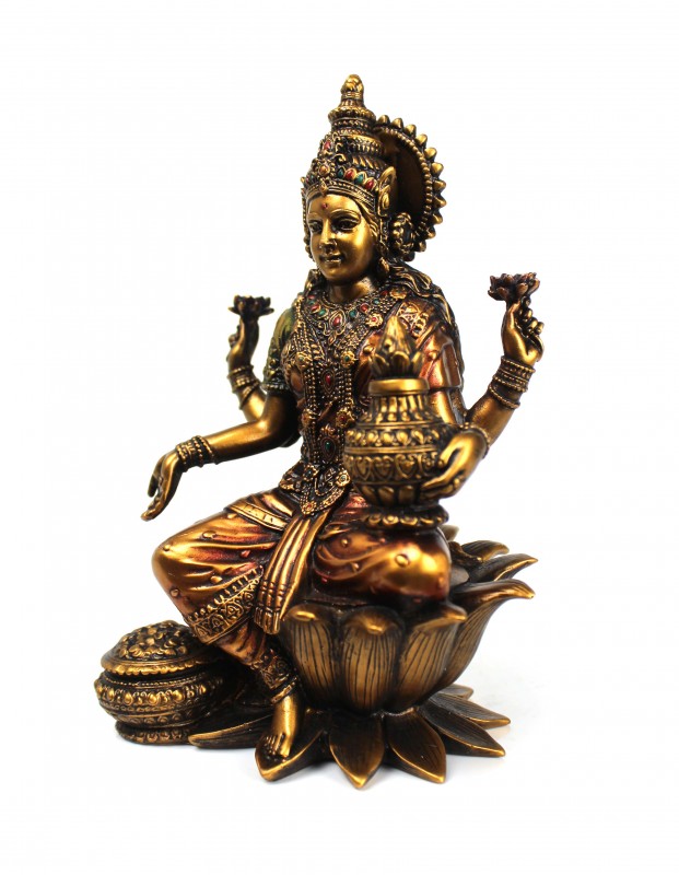 RESIN BRASS FINISH SITTING LAXMI STATUE