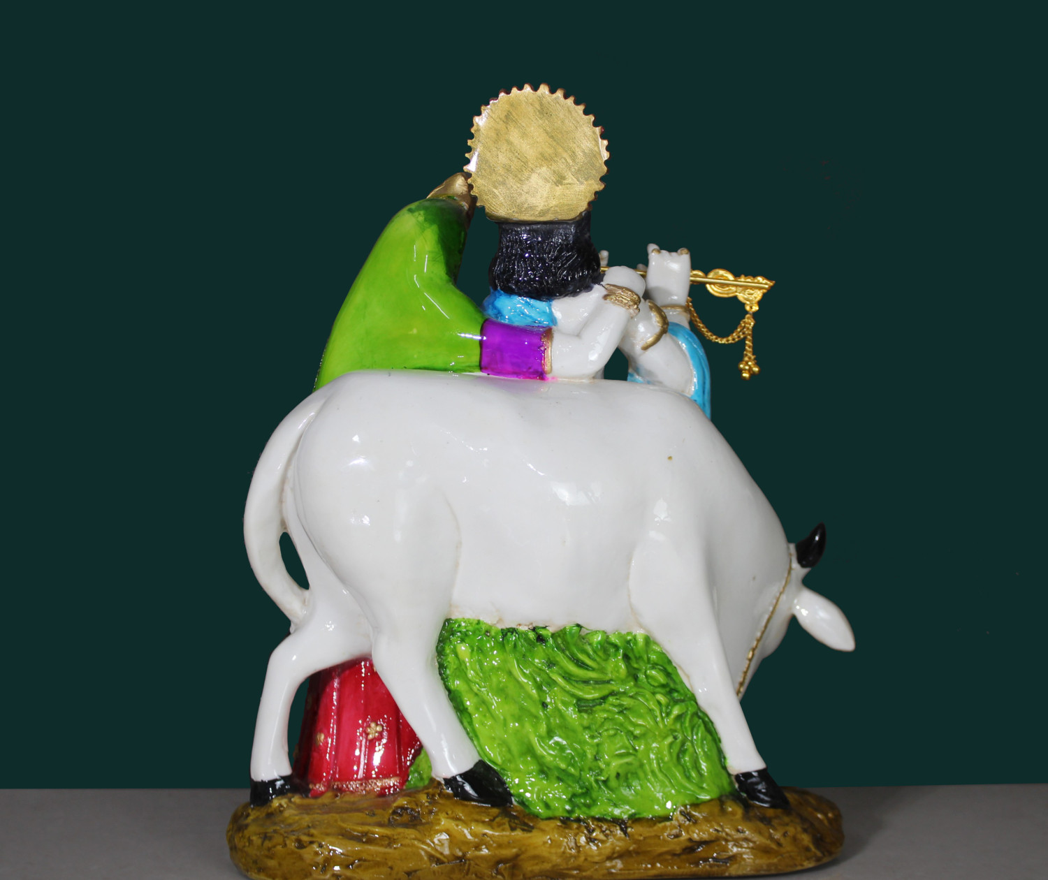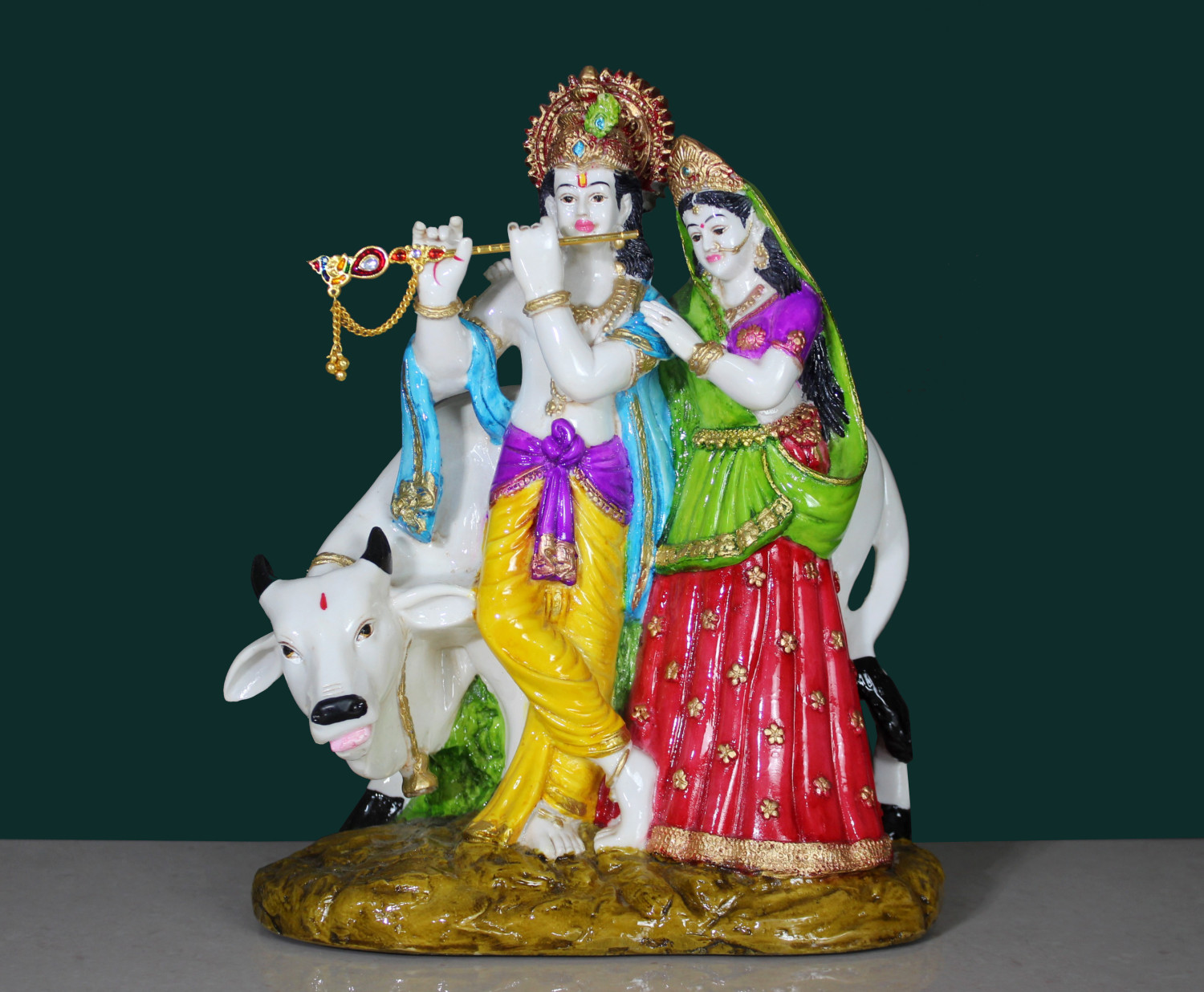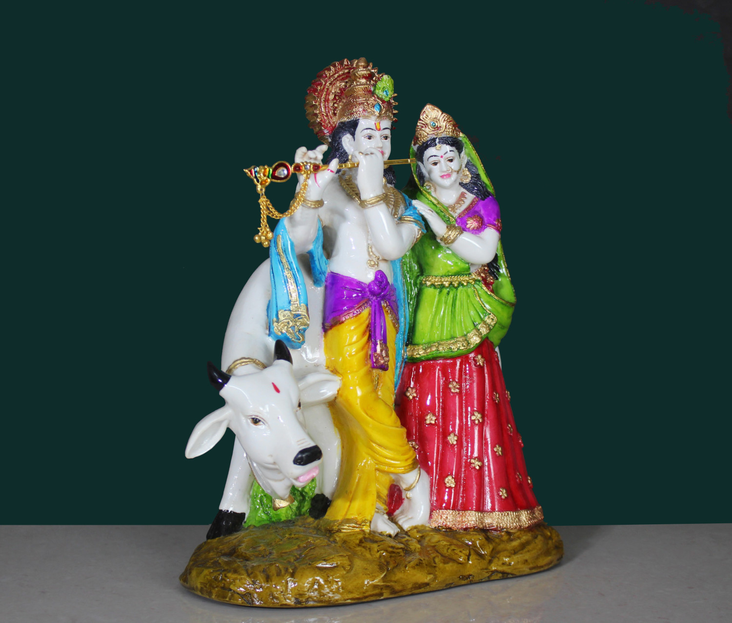 RESIN PAINTED RADHA KRISHNA WITH COW
