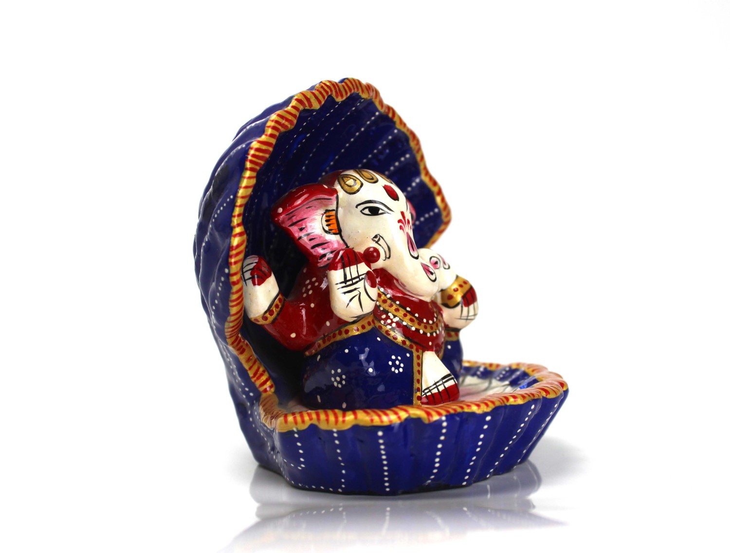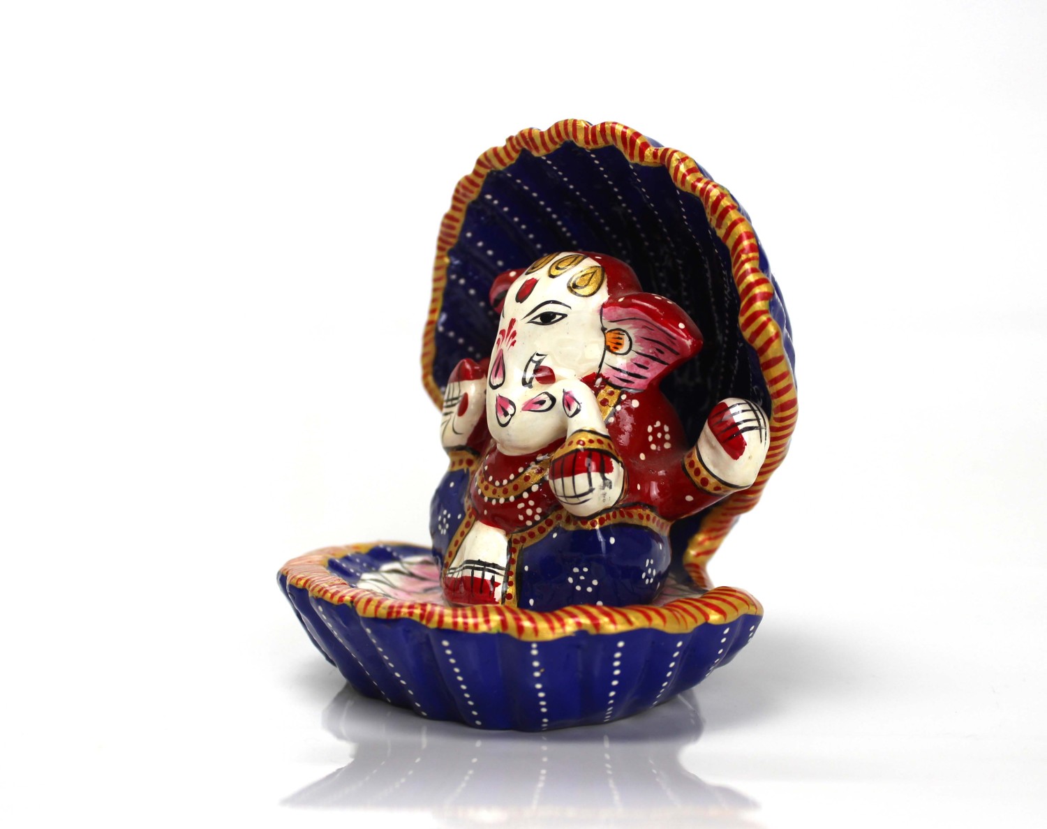 Metal Seep Ganesh Statue, Painted Enamel Ganesh Figurine