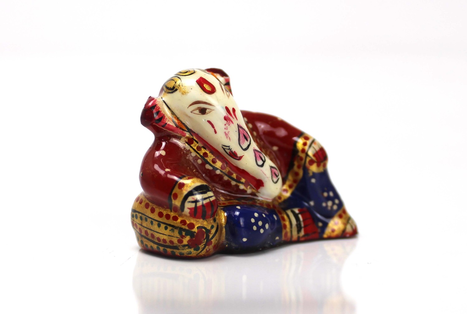 Metal Meenakari Sleeping Ganesh Statue for Decor and Puja