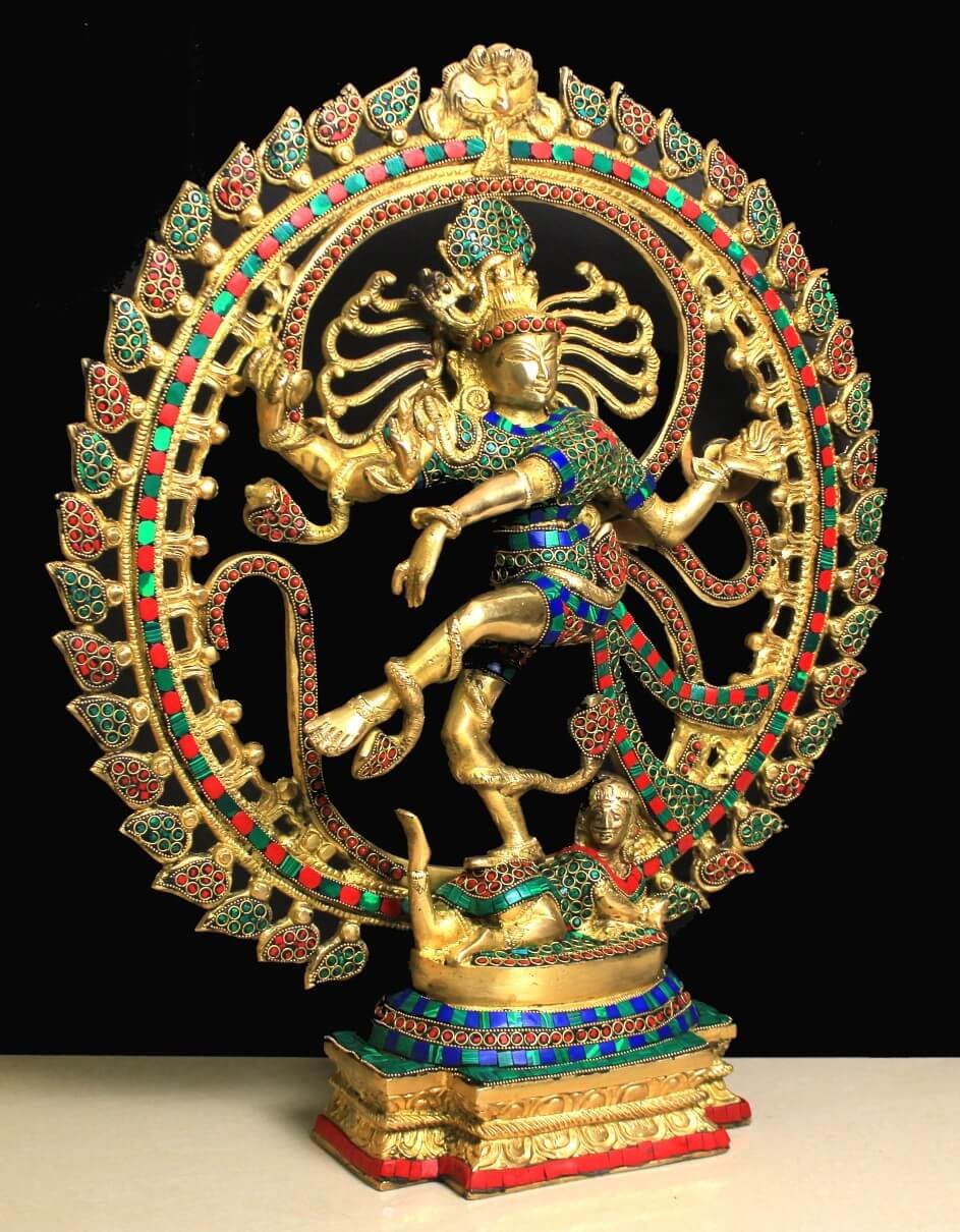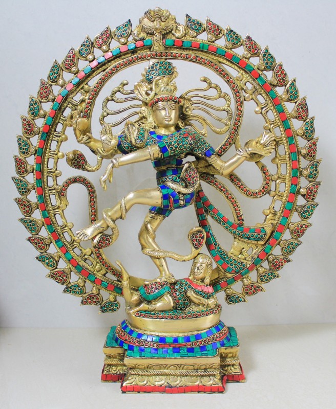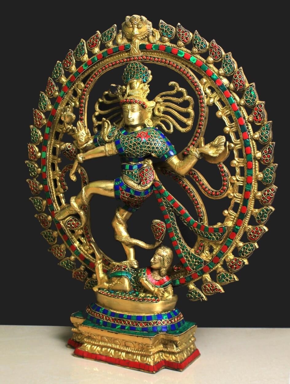Brass Ring Stone Work Natraj Statue | Brass Dancing Shiva Idol