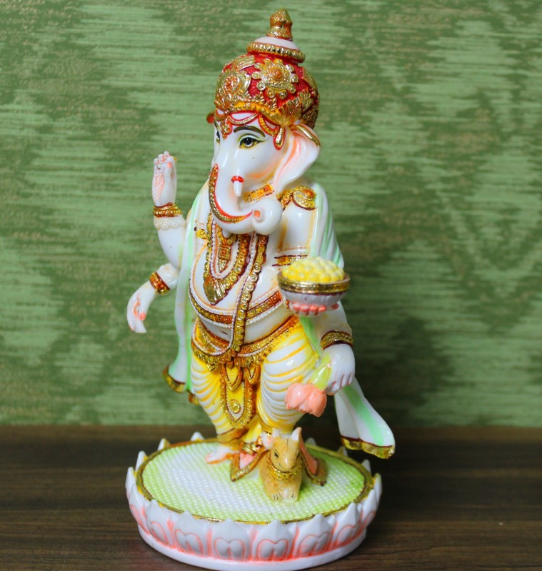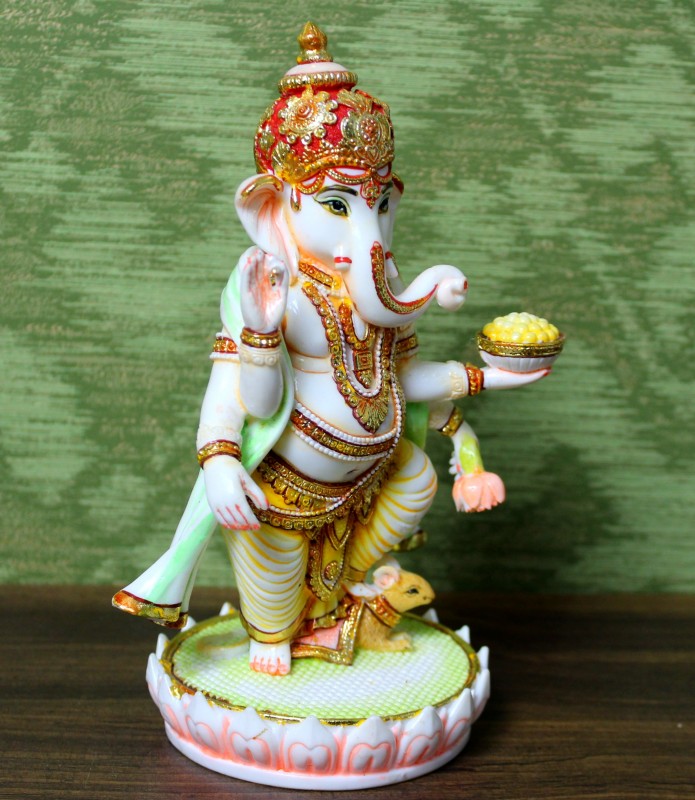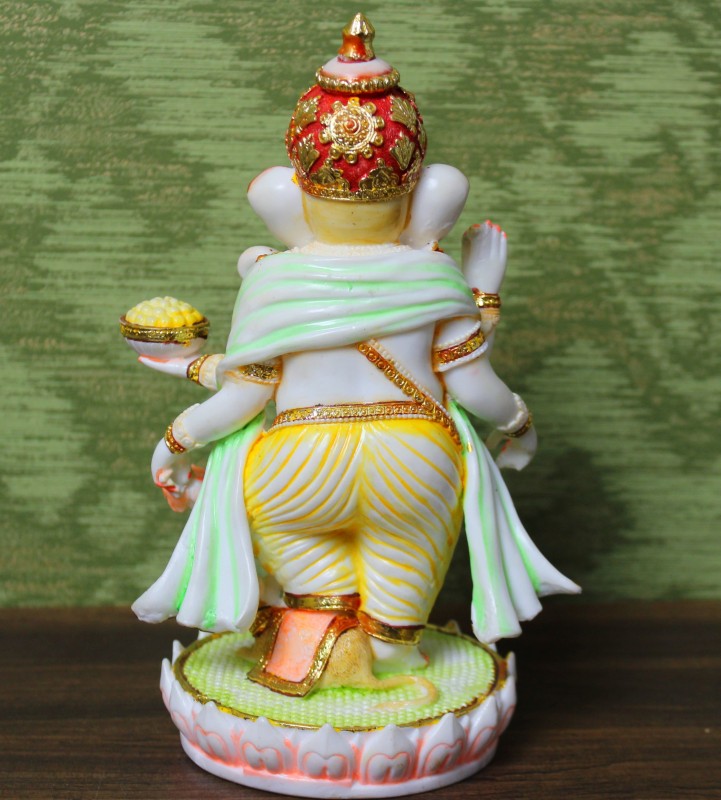 Brass Ganesh Sitting On Lotus with Ring Stone