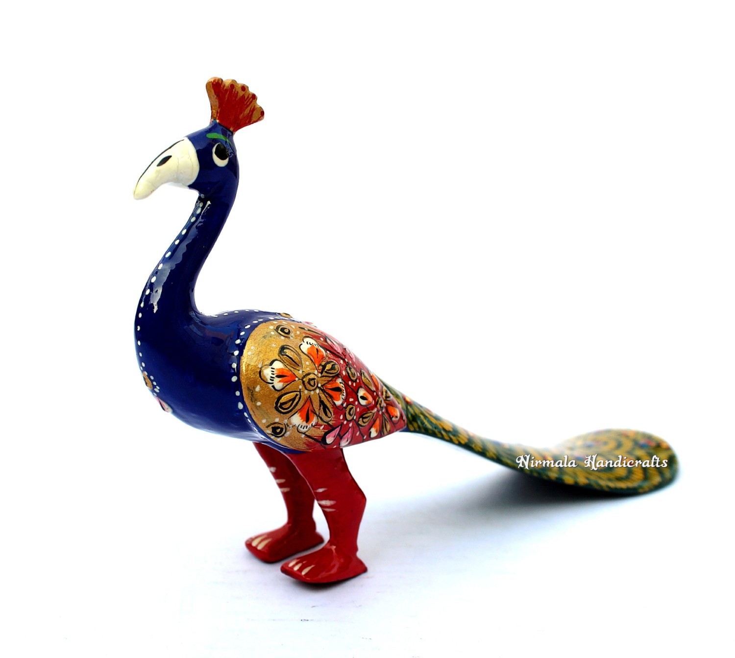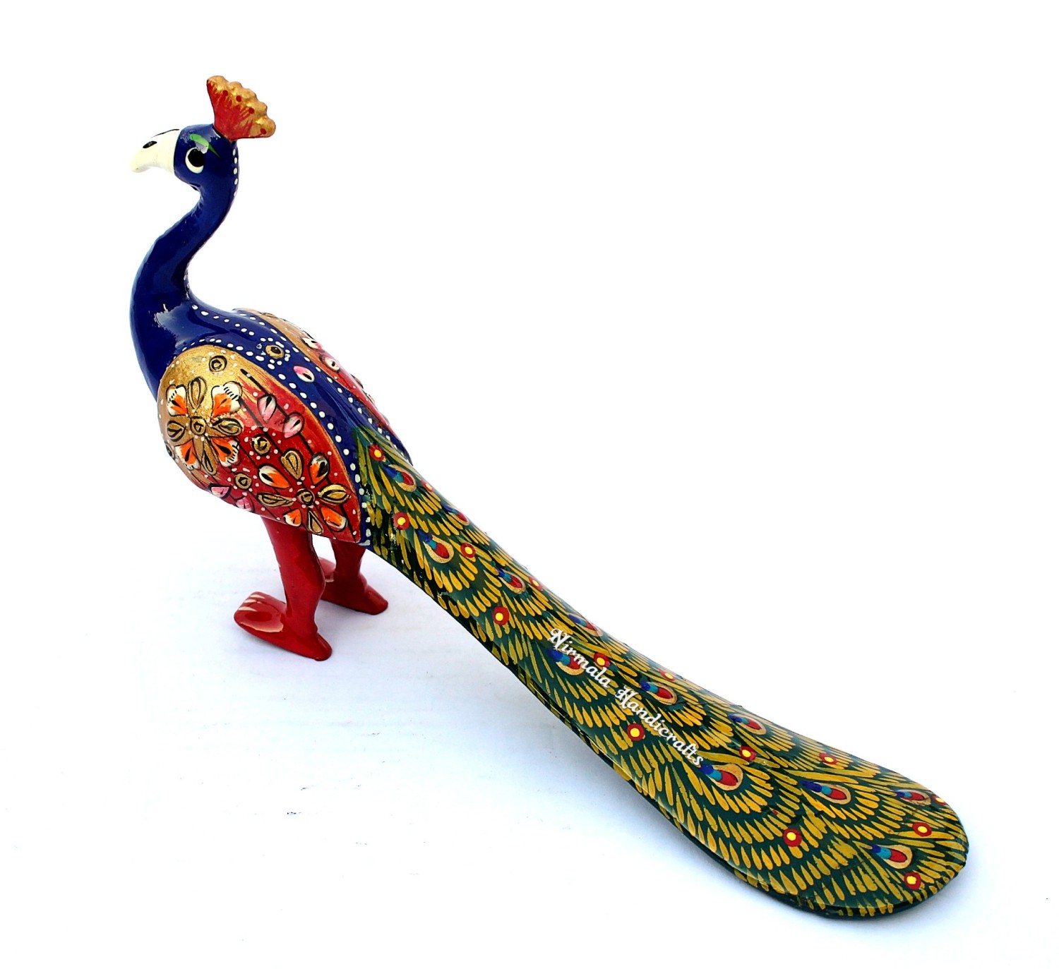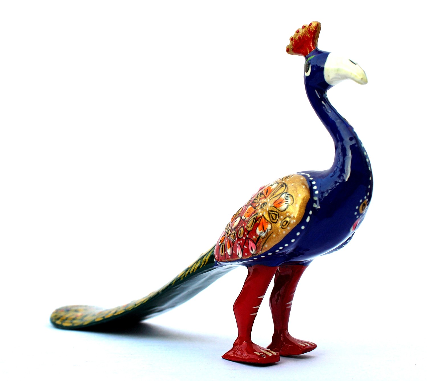 A magnificent depiction of a bird whose exquisite plumage symbolizes royalty, wisdom, and immortality. Its fabulous tail has been the subject of many fantastic tales and now, this intricately patterned bird, boasting of a metal enamel painted throne can enhance your home.