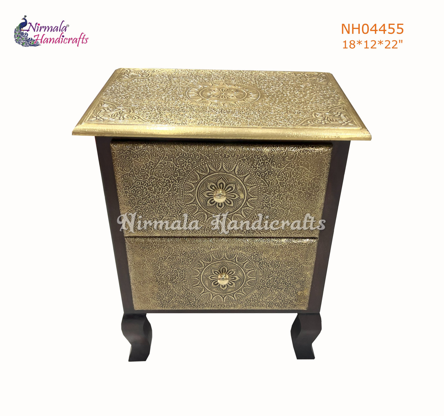 Wooden 4 Drawer Curve Leg Brass Fitted