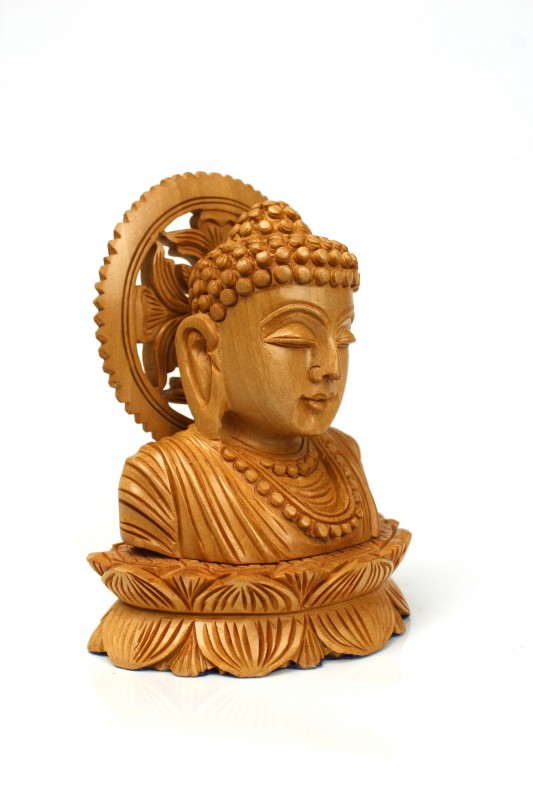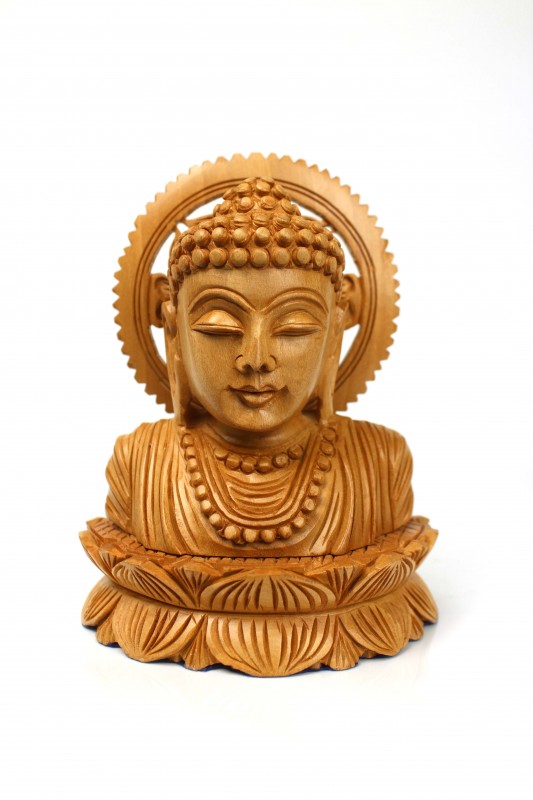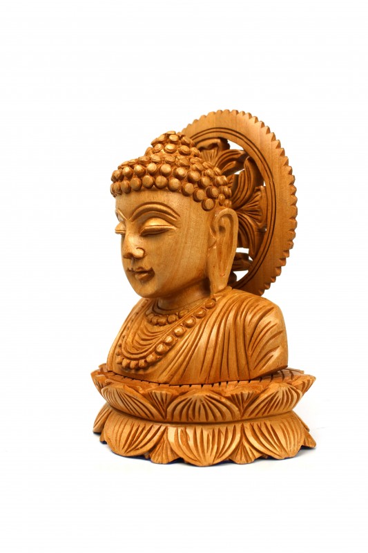 WOODEN BUST BUDDHA FIGUR ON LOTUS